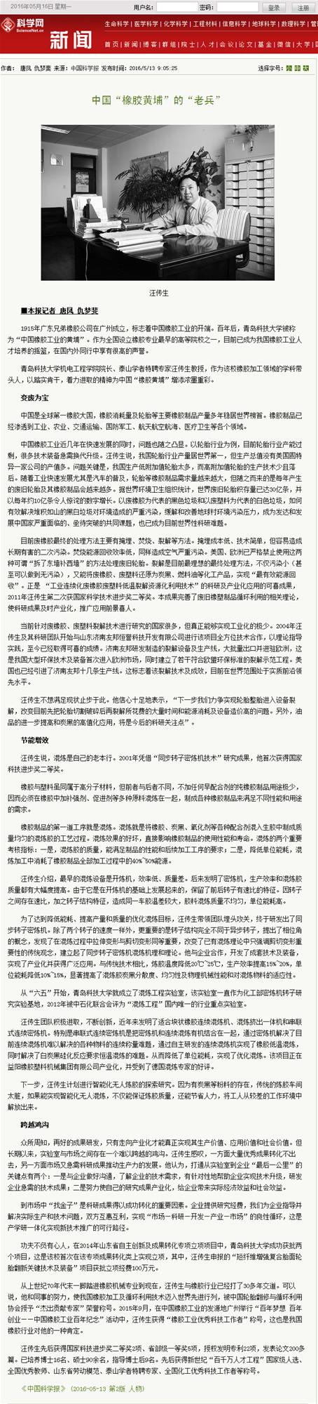 4月21日,应《中国科学报》的邀请,pp电子院长汪传生教授接受了该报记者的专访。