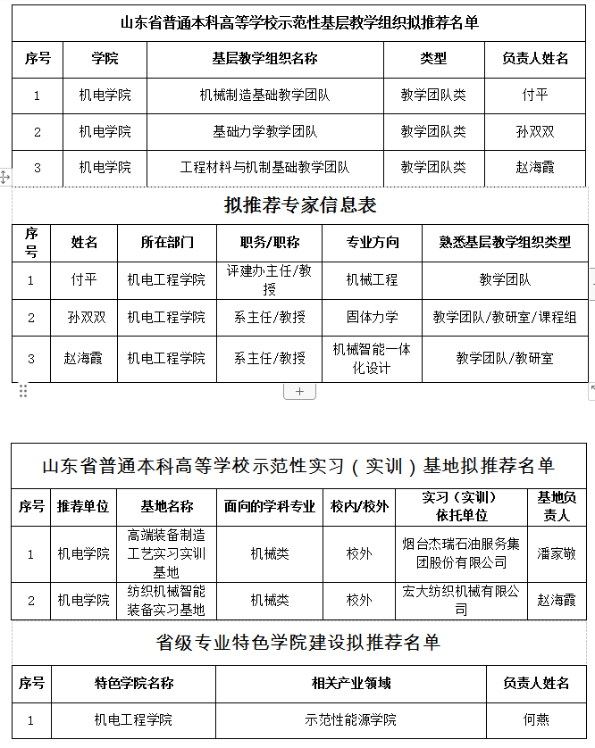 依据学校《关于开展省级未来技术学院、专业特色学院、示范性基层教学组织、实验教学示范中心、虚拟仿真实验教学示范中心、示范性实习(实训)基地、“111”计划建设申报的通知》,学院组织符合条件的教师申报,经学院初审,现拟推荐以下项目类别和人员,进入学校评审环节,并进行公示。公示期三天(2023年12月4日-12月6日),如有异议,请在公示期内向pp电子官方网站教学办反映。