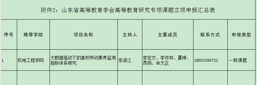 依据学校《关于开展2023年山东省高等教育学会高等教育研究专项课题申报工作的通知》学院组织符合条件的教师申报,共有1位教师提交材料,现拟推荐以下项目进入学校评审环节,并进行公示。公示期三天(2024年1月12日-1月14日),如有异议,请在公示期内向pp电子官方网站教学办反映。