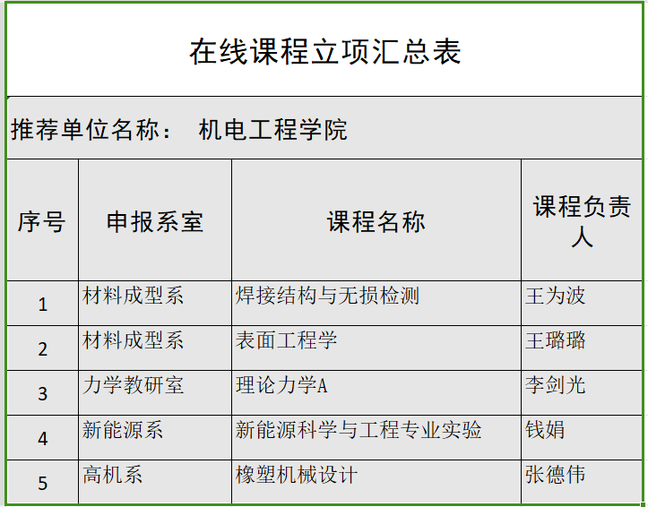 根据《关于推进学院省在线课程增量建设的通知》和《pp电子官方网站2024-2027聘期高水平教学业绩资助办法》,学院组织各专业申报新建在线课程,共有5门课程提交材料,经评委评审,现拟对以下5门课程进行立项,所有立项课程负责人需在规定时间,达成规定建设目标,特此公示。公示期三天(2024年7月22日-7月24日),如有异议,请在公示期内向pp电子官方网站教学办反映。