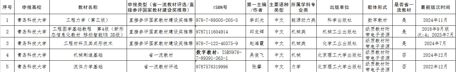 根据学校《关于开展第三批山东省高等教育一流教材和第二届全国教材建设奖评选推荐工作的通知》,经个人申报,学院初审,同意以下教材申报并推荐至学校,参加进一步遴选(排名不分先后),特此公示。。公示期三天(2025年7月3日-7月5日),如有异议,请在公示期内向pp电子官方网站教学办反映