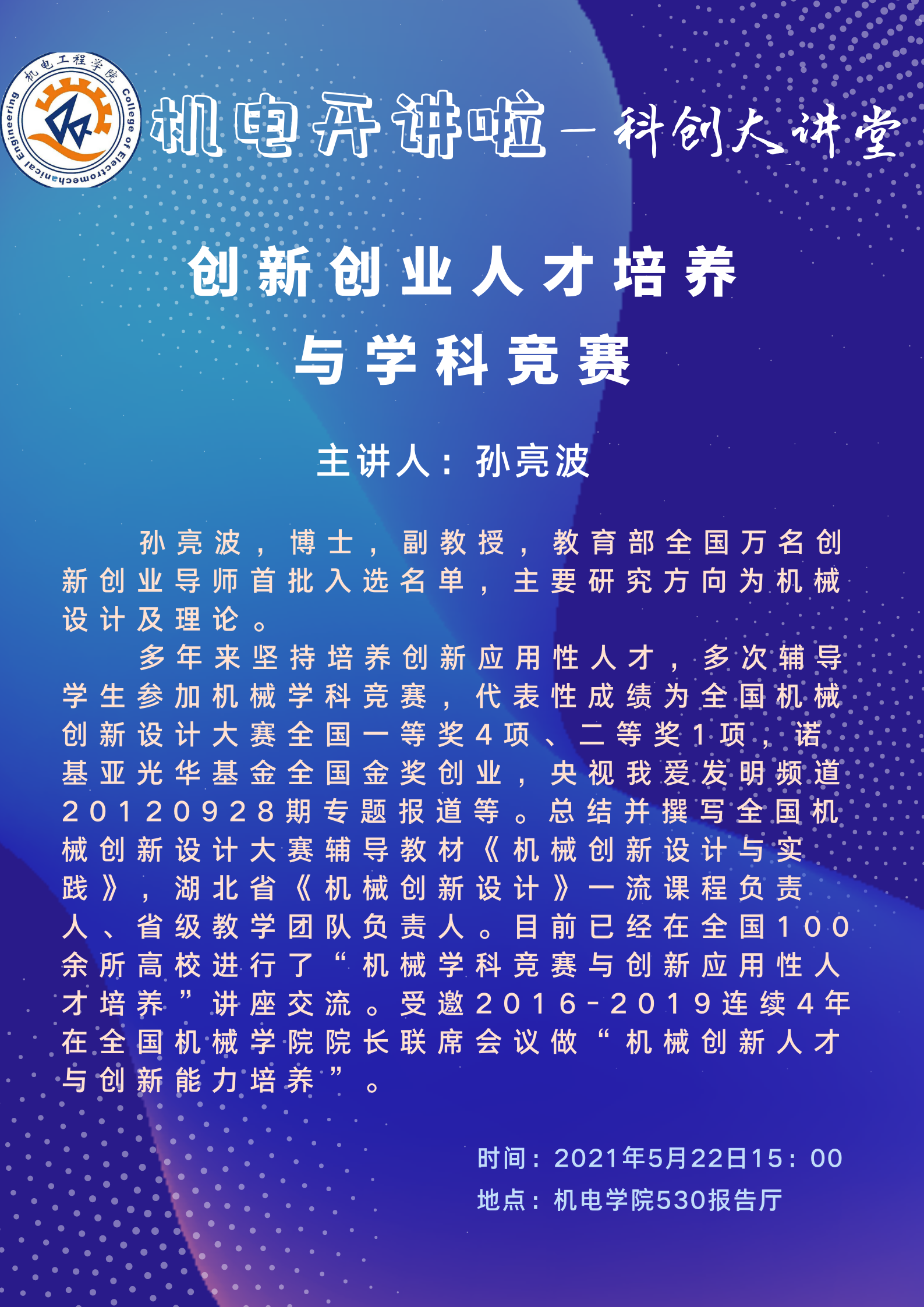 创新创业人才培养与学科竞赛讲座