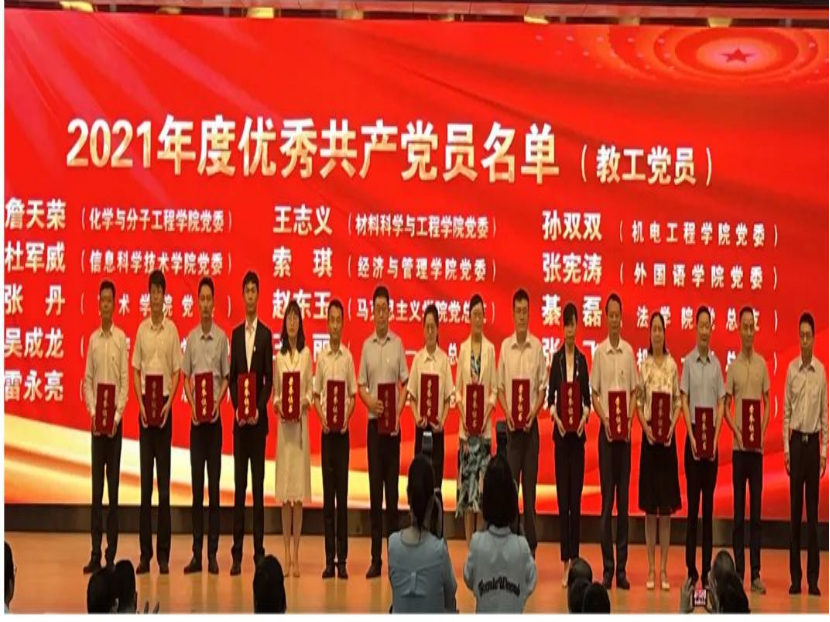 学院党委荣获2021年度思想政治工作先进集体,pp电子官方网站本科生第三党支部荣获“五好”党支部,肖强荣获2021年度思想政治工作先进个人,孙双双荣获2021年度优秀共产党员(教工党员),耿宇轩荣获2021年度优秀共产党员(学生党员)。肖强、王娟娟撰写的《“四史教育”融入新时代青年爱国主义教育研究》获评一等奖;王作辉、杜康参与撰写的《新时代高校劳动教育意义及实施路径》获评一等奖。