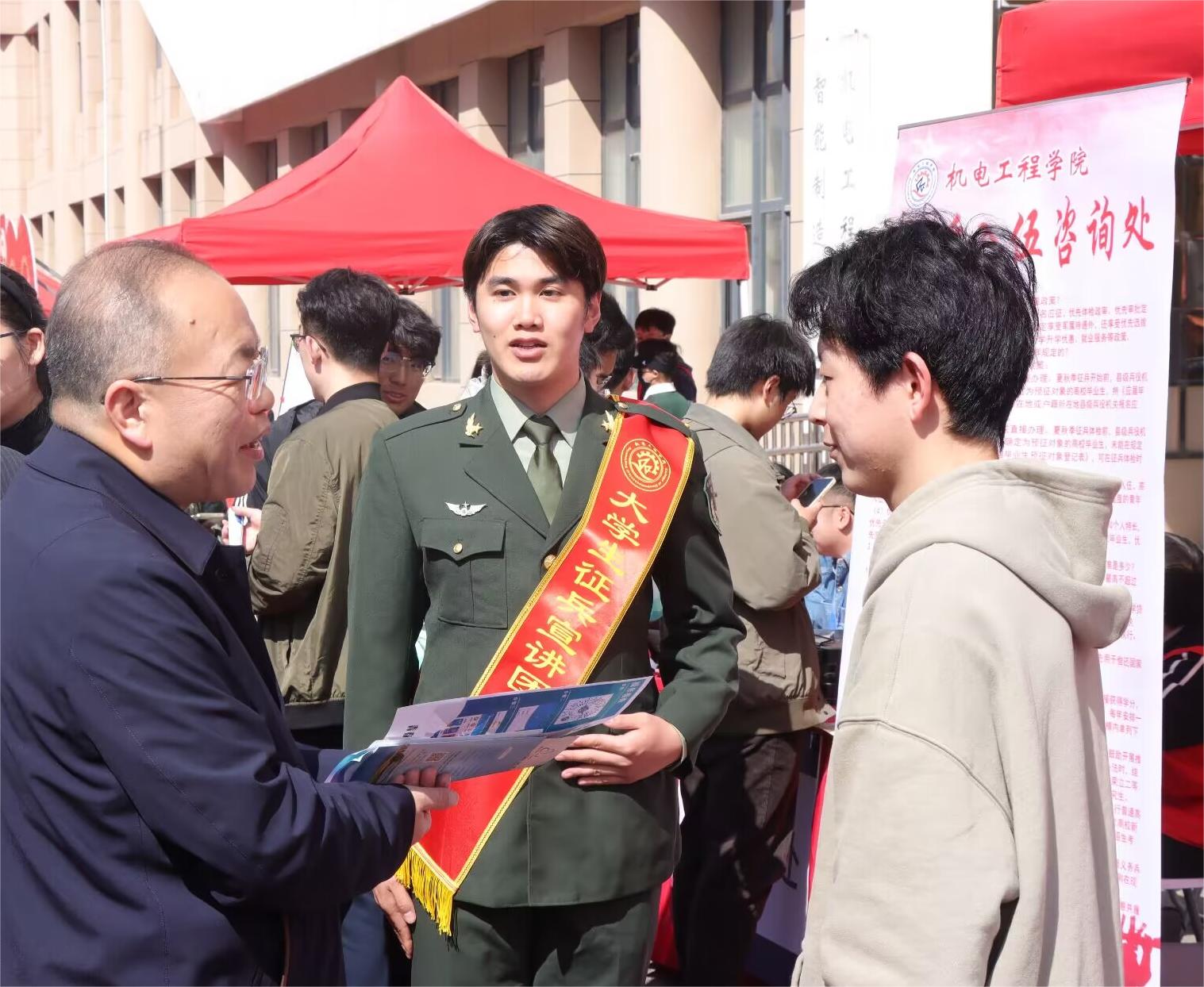3月28日,pp电子官方网站在双选会现场设置“征兵入伍咨询处”,活动现场毕业生们主动咨询。特邀本校退伍士兵进行现场答疑,面对面地向同学们细致地解答了大学生参军入伍应征条件、应征流程、发展途径及相关优待政策等问题,勉励学生们将青春奉献于军营,将才华奉献于祖国,用青春和热血谱写人生最壮丽的诗篇,为建设和保卫祖国建功立业。