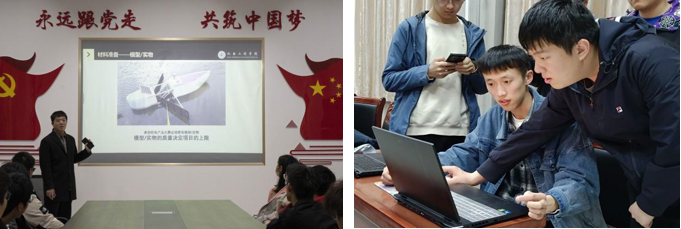此次活动主要针对机电产品创新设计竞赛解疑答惑。首先,曹子豪讲述了自己的科创历程,向同学们讲解了自己的科创作品,带领同学们熟悉了机电产品创新设计竞赛的比赛流程,为同学们分享了诸多参赛经验。最后,曹子豪与每位同学进行了交流沟通,对同学们的参赛项目进行了指正、修改,对各项目的ppt、说明书等给予了宝贵的建议。鼓励同学们在大学期间努力学习技能,踊跃参加科技创新比赛,提高自身实践能力。