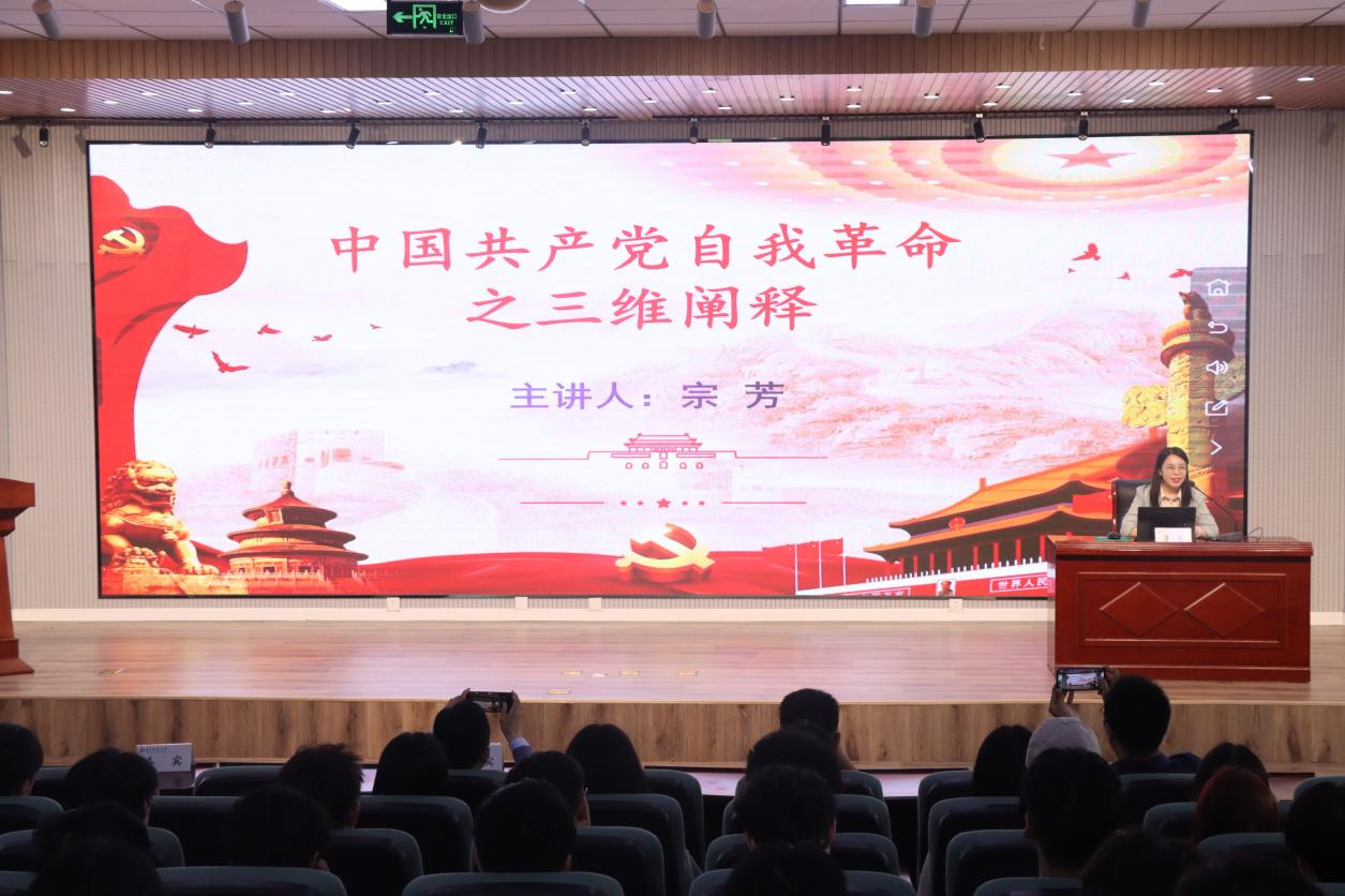 会上,肖强为学院“学习习近平新时代中国特色社会主义思想”宣讲团成员颁发聘书。学校“理想科大”宣讲组成员、马克思主义学院党史党建研究所所长宗芳作《党的自我革命的三维阐释》示范宣讲,从理论维度、历史维度、实践维度等三个维度对党的自我革命进行深刻解读,带领师生进一步学习贯彻习近平新时代中国特色社会主义思想。