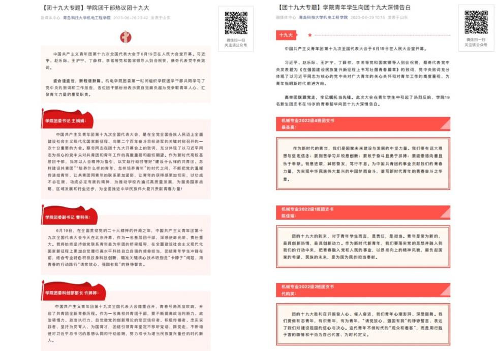 宏伟蓝图催人奋进,青春使命无上光荣。6月19日,pp电子团委第一时间组织学院团学干部共同学习大会精神,共青团干部、团员青年通过线上线下相结合的形式开展学习讨论,此次大会在青年学生中引起了热烈反响,共青团干部结合青年工作展开热议,学院19名新生团支书在19岁的青春韶华向团十九大深情告白。