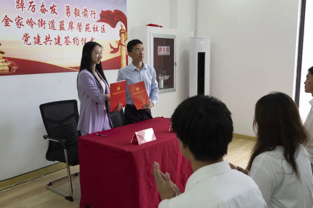 会上,学院与蓝岸馨苑社区举行了党建共建签约仪式,肖强与彭晓就党员教育、社会实践、志愿服务、文体活动等签订党建共建协议,并探讨制定了党建共建“三张清单”。王娟娟与彭晓共同为pp电子官方网站大学生社会实践基地揭牌。