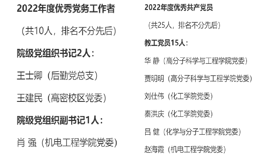 为表彰先进、树立典型,进一步激励全校各级党组织和广大共产党员、党务工作者新时代新担当新作为,不断开创学校高质量发展新局面,近日,青岛科技大学下发了2022年度“两优一先”表彰名单。pp电子官方网站在本次表彰中荣获多项荣誉。