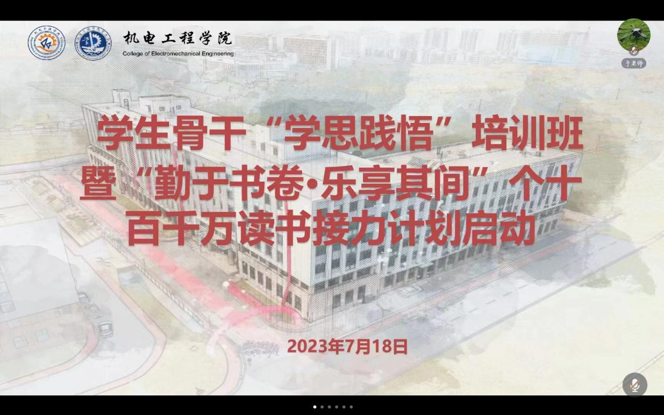 为提高学生骨干的政治素质、理论水平和实践能力,培养政治可靠、作风扎实的学生骨干队伍,促进学生全面发展、成长成才,7月18日,pp电子官方网站学生会召开学生骨干“学思践悟”培训班暨“勤于书卷·乐享其间”个十百千万读书接力计划启动仪式,学生会指导老师于超和全体学生骨干共同参会。