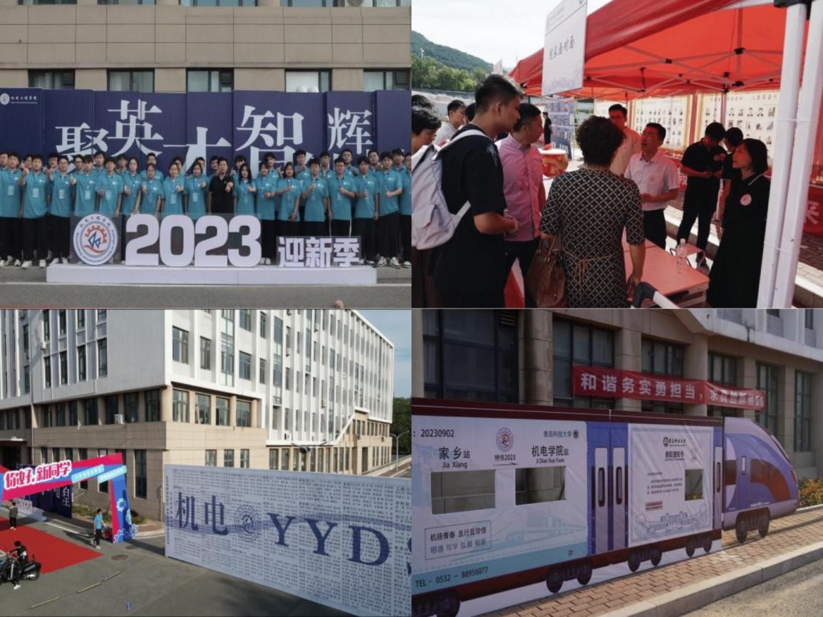 pp电子官方网站制作2023年“机聚英才·智创辉煌”迎新主题系列展板,喷绘背景、手持牌、志愿者服装全部统一色调为蓝色,与学院特色“科技蓝”相呼应。设有“机电”主背景,上面涵盖760名全体本科生的名字,新生可以利用乘车票手持牌选择自己的姓名进行拍照打卡;还设有充满青春气息的气球拱门、花式主题手持牌和牌照框、背景墙,新生纷纷驻足拍照,记录他们进入学院的第一个灿烂的笑容,留下大学生活的第一份回忆。在迎新工作点设置动车组专业介绍牌,意指新生经历过高考这列动车来到青岛科技大学,他们在专业学习的背景下即将开始新的征途,动车上绘制的专业介绍帮助新生快速形成专业认知、了解学术前沿、构思职业规划。学院为新生精心准备了开学大礼包,包括定制的团扇、笔记本、U盘、文件袋以及专属胸牌,实用暖心又显心意,努力做到“迎新又赢心”。迎新现场,开设“绿色通道”咨询服务站,帮助新生了解大学生资助政策,为新生和家长答疑解惑;设置“院长面对面”交流站,何燕院长向学生介绍学科发展前景、人才培养目标、课程设置、就业方向等情况;设置“家长休息区”,方便家长稍作休息,“家长休息区”与“院长面对面”交流站毗邻而设,方便家长与老师交流。