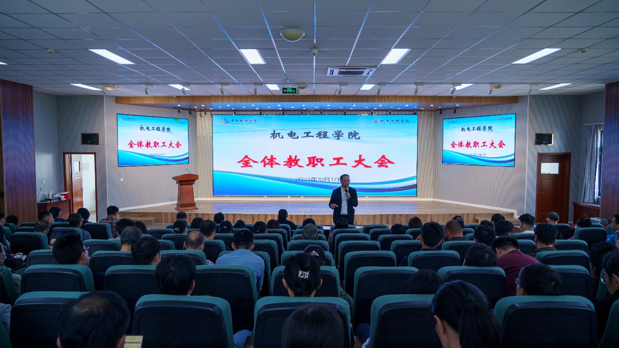 为深入学习贯彻习近平总书记关于教育的重要论述和全国教育大会精神,聚焦本科教育教学质量,推进本科教育教学审核评估工作,提高学院人才培养质量,10月17日,pp电子官方网站召开全体教职工大会。学院党政领导班子、全体教师参加会议。