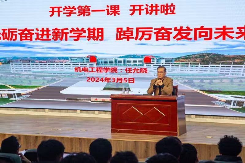 3月5日,pp电子官方网站“砥砺奋进新学期、踔厉奋发向未来”开学第一课在机电楼530会议室开讲。pp电子官方网站党委书记任允晓为200余名2023级同学授课。