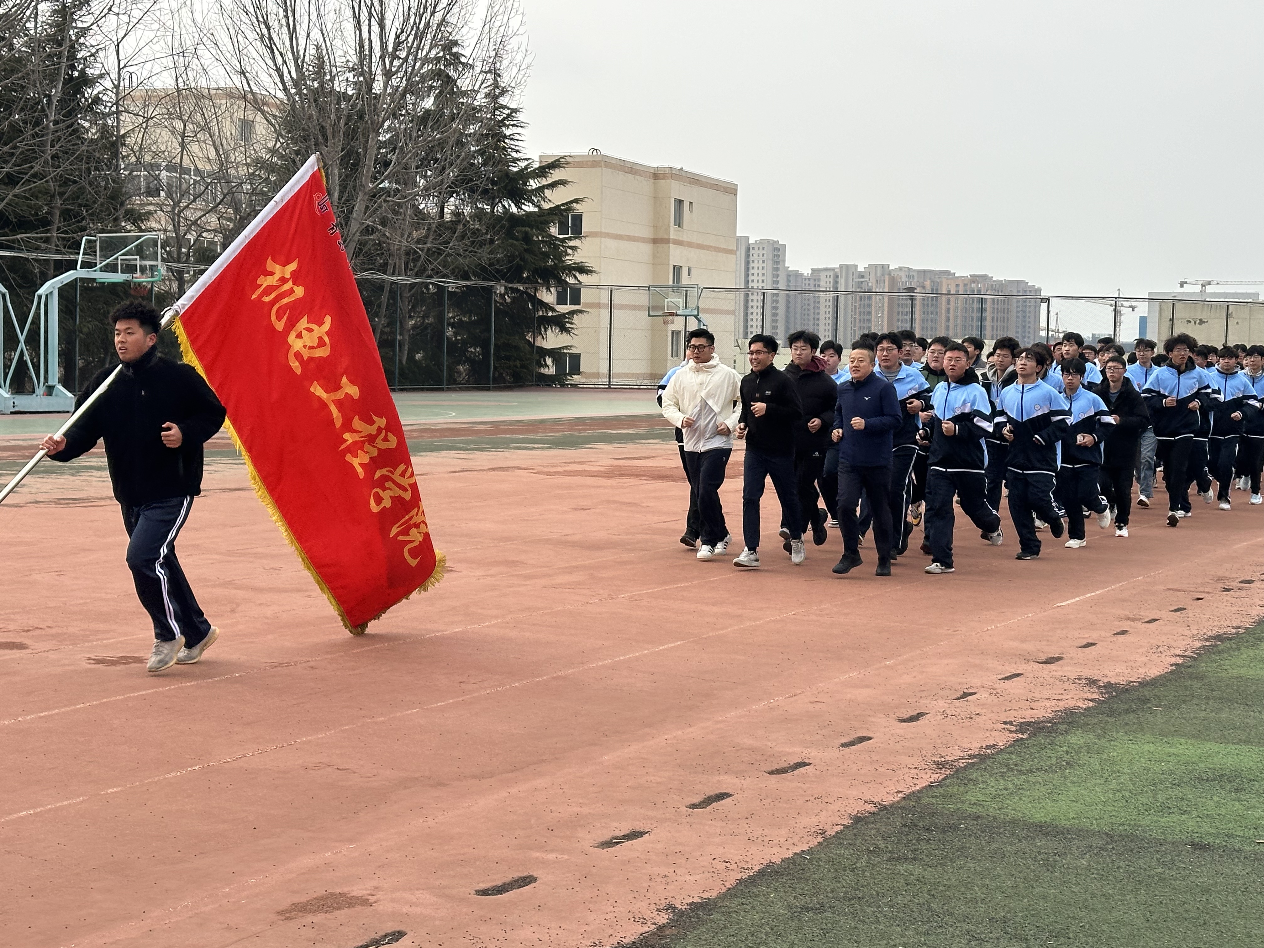 随着一声号令,同学们迈着矫健的步伐,挥舞着院旗,开始了酣畅淋漓的晨跑运动。老师同学们步伐适中,调整呼吸,保持节奏,科学运动,彰显着机电学子奋发向上的蓬勃朝气。