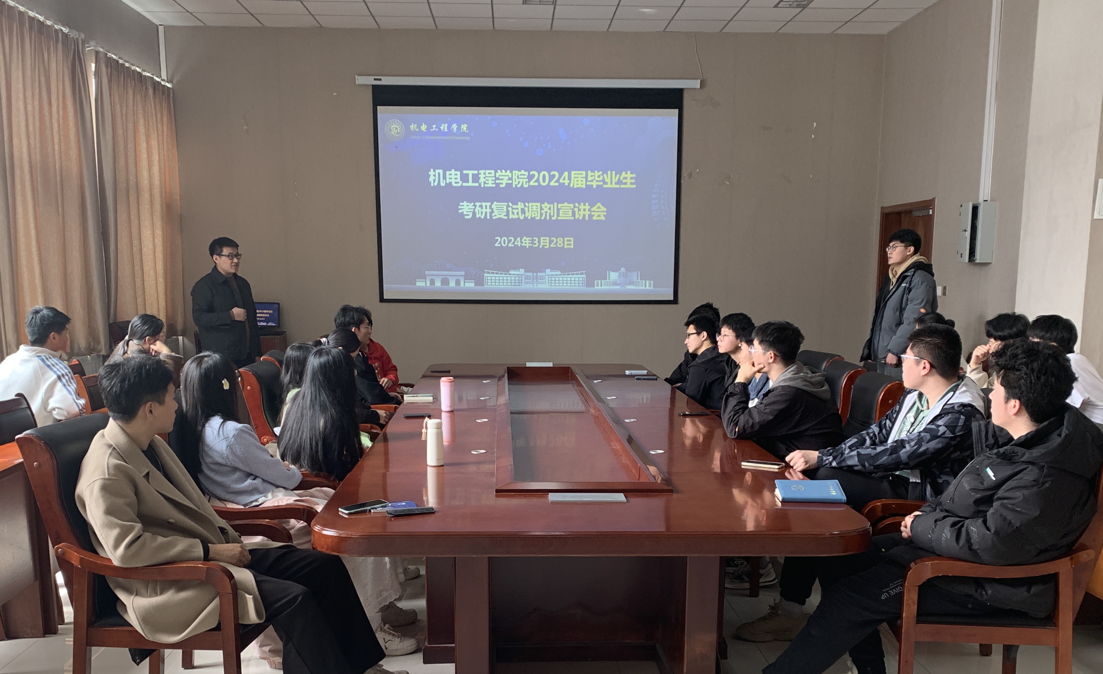 3月28日,pp电子官方网站2024届毕业生考研复试调剂宣讲会在机电楼518会议室举办。副院长刘治明参加会议并进行复试调剂指导,毕业班辅导员、2024届考研学生代表参加宣讲会。