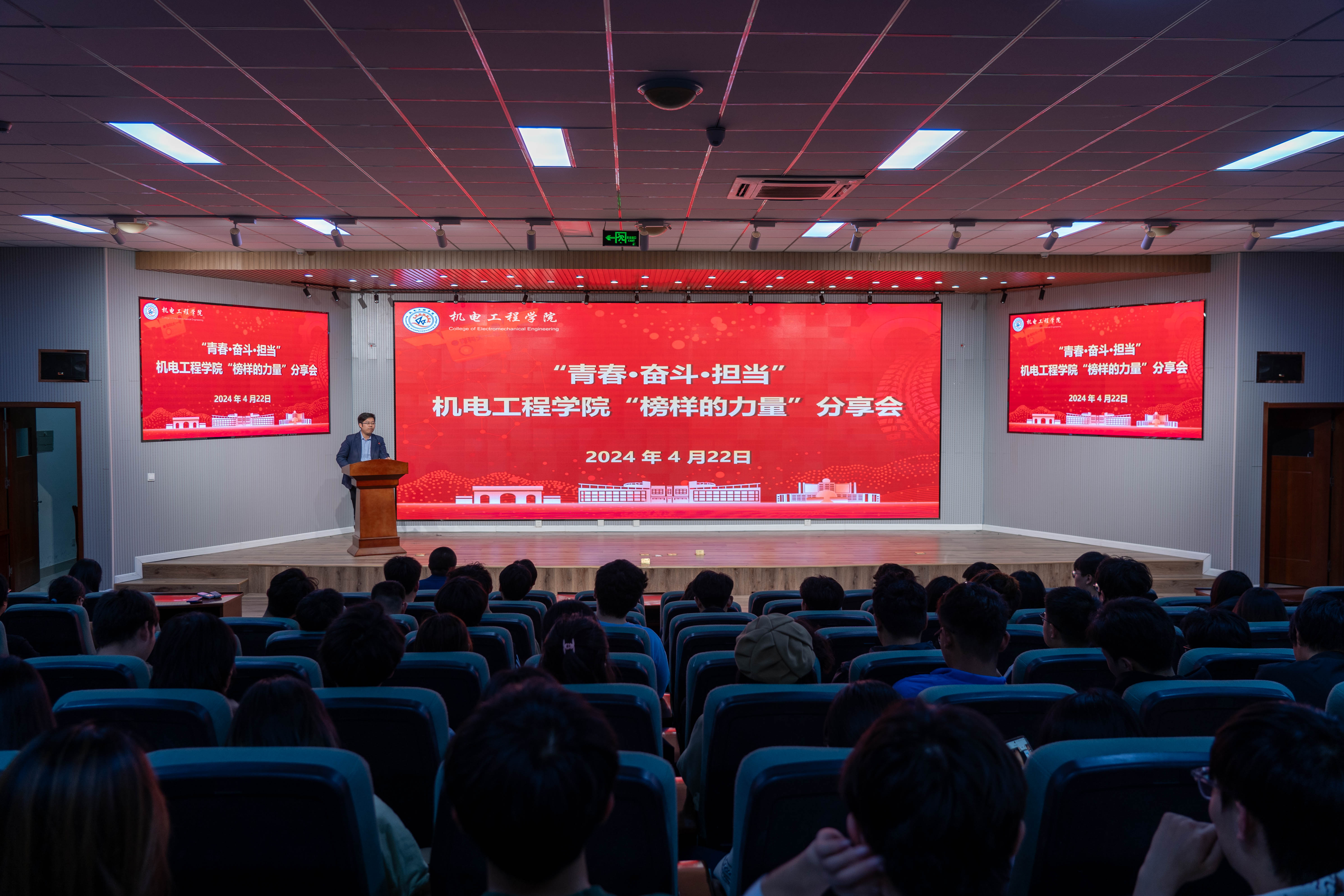 值五四青年节来临之际,为深入学习贯彻落实习近平总书记关于青年工作的重要论述精神,积极引导青年学生树立远大理想,明确使命担当,4月22日,“榜样的力量”分享会在机电楼530会议室召开。pp电子官方网站党委副书记兼副院长杨小明、辅导员于超、穆青青、杜康参加分享会,学生会骨干、融媒体中心全体成员、易班工作站全体成员、2023级全体班长、团支书、副班长等200余人一同参会。