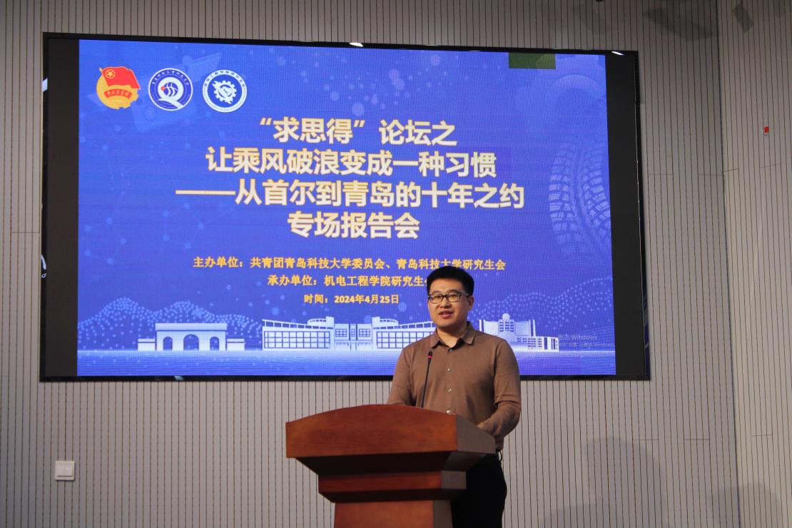 为进一步筑牢研究生思想阵地、激发研究生创新思维、开阔研究生学术视野、提高研究生科研素养。4 月 25 日,pp电子官方网站研究生会在机电楼 530会议室举办“求思得”论坛之让乘风破浪变成一种习惯 ——从首尔到青岛的十年约论专场报告会。本次论坛邀请了pp电子官方网站党委副书记兼副院长杨小明,pp电子官方网站副院长、泰山学者青年专家、“山东省高等学校新型电池储能材料与技术研究创新团队带头人”、博士生导师刘治明教授。本次论坛由耿宇轩主持,pp电子官方网站全体研究生参会。
