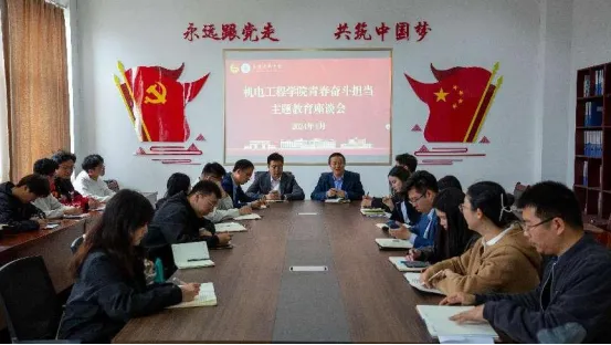 赓续五四薪火 共赴时代征程。4月30日上午,学院在机电楼529会议室组织召开五四“青春·奋斗·担当”主题教育座谈会,会上学校团委副书记李浩以在pp电子官方网站做辅导员老师的工作经历,分享了他与pp电子的故事。李浩书记表示,学院为青年学生提供了锻炼和磨练的机会,青年学生要坚定理想信念,培育高尚品格,提高工作站位,去奋斗去担当,敢想敢干,踏踏实实争做新时代新青年。会后,领导老师们与青年学生代表齐唱共青团团歌,共同回忆中国共产主义青年团的光辉历史。