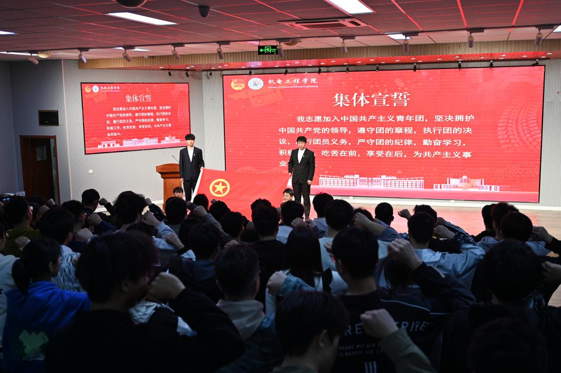 4月28日,pp电子官方网站团委在机电530会议室开展“青春奋力向党,挺膺担当筑未来”2023年新发展团员入团仪式,学院党委副书记兼副院长杨小明,学院团委教师代表出席,团支部书记代表、优秀团员代表以及2023年新发展团员参加本次仪式。