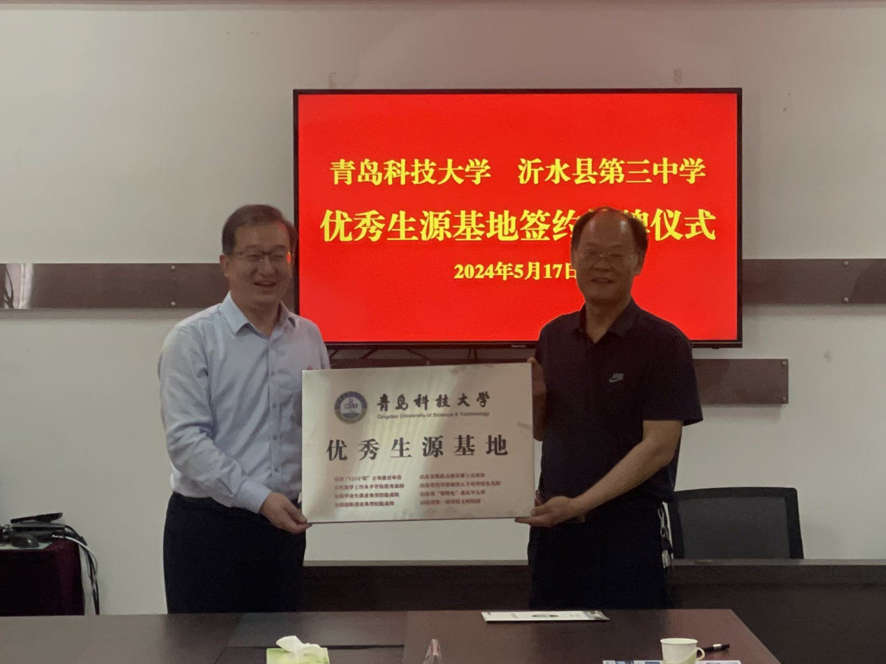 pp电子官方网站一行先后赴蒙阴一中、沂南一中、沂水三中三所中学开展招生宣传活动。学院党委书记任允晓详细介绍了学校的办学历史、学科专业、人才培养、招生就业等方面情况,副院长李剑光介绍学院在科学研究、人才培养和社会服务等方面取得的显著成就。任允晓代表学校分别与蒙阴一中、沂南一中、沂水三中揭牌优秀生源基地,副院长李剑光与三所学校分别签订了《优秀生源基地共建协议书》。