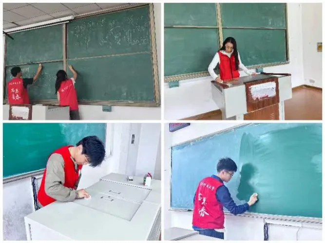 6月5日是“第53个世界环境日”,青年志愿者和校内保洁员积极行动,教学楼内,擦黑板、净桌面;教学楼外,清理卫生、排列电车。志愿者们用实际行动诠释着对环保的支持,呼唤着人们对地球的关爱。