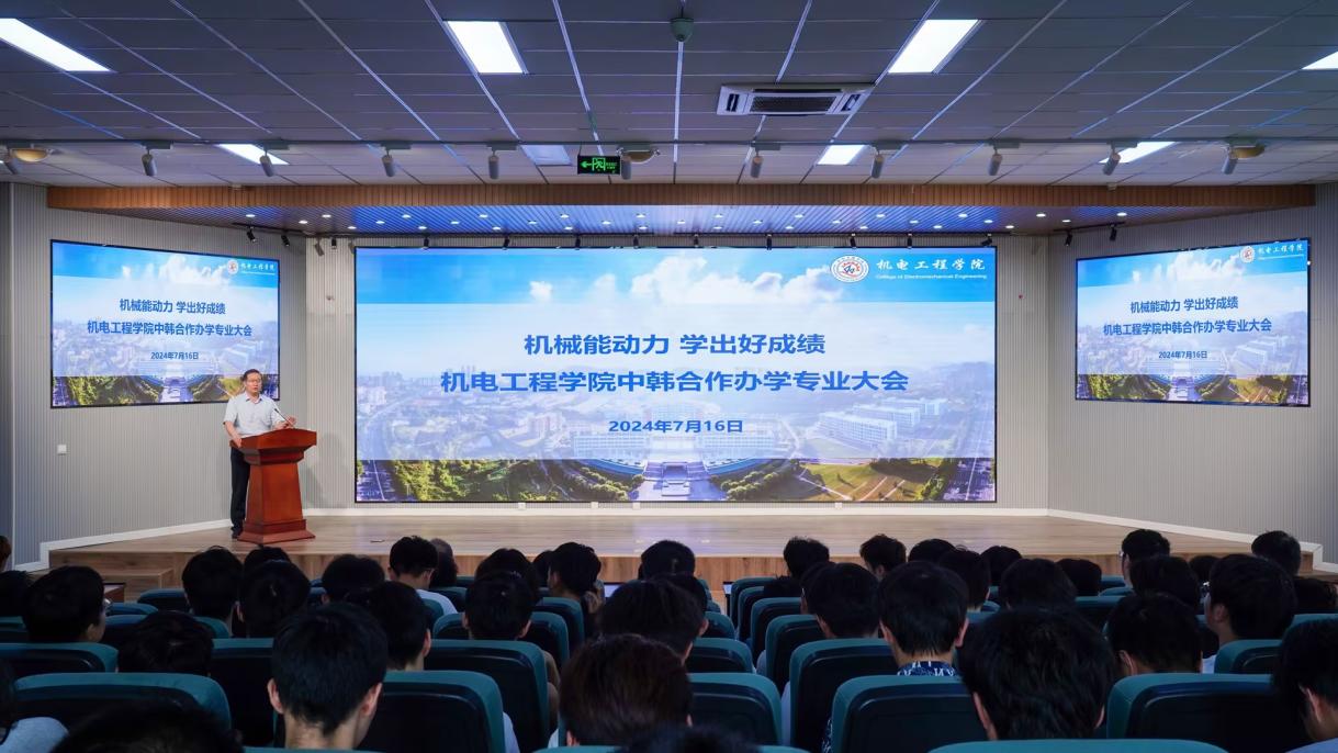 为加强中韩合作办学专业学风建设,推进学院中韩合作办学高质量发展,7月16日下午,pp电子官方网站中韩合作办学专业大会在机电楼530召开,学院党委书记任允晓、副院长杨化林、合作办学办公室主任付平出席活动,23级中韩专业课教师、班主任、辅导员、全体学生200余人参加活动。