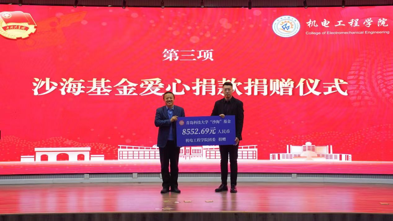 “沙海基金”爱心捐款捐赠仪式环节,由院党委副书记兼副院长杨小明代表学院向校团委副书记李航进行捐赠。青岛科技大学沙海基金成立于2014年,为支教服务地的教育事业发展和研究生支教团工作提供了重要保障。在沙海助学专项活动中,pp电子官方网站的老师和同学们用自己的实际行动支援西部建设,为西部乡村教育事业发展贡献自己的力量,推动西部教育事业蓬勃发展。