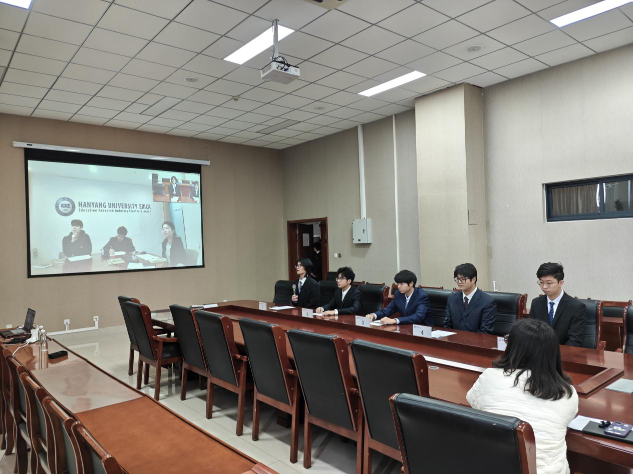 2025年1 月 16 日,韩国汉阳大学顺利开展2023级青岛科技大学pp电子官方网站中韩合作办学出国面试选拔。本次面试选拔依托线上会议在青岛科技大学pp电子官方网站518 会议室进行。汉阳大学ERICA校区教授Keun Ryu、汉阳大学ERICA校区教授Andrew Choi、国际处项目负责人朴美颖负责面试评审,学院25 名学生参与本次面试选拔。