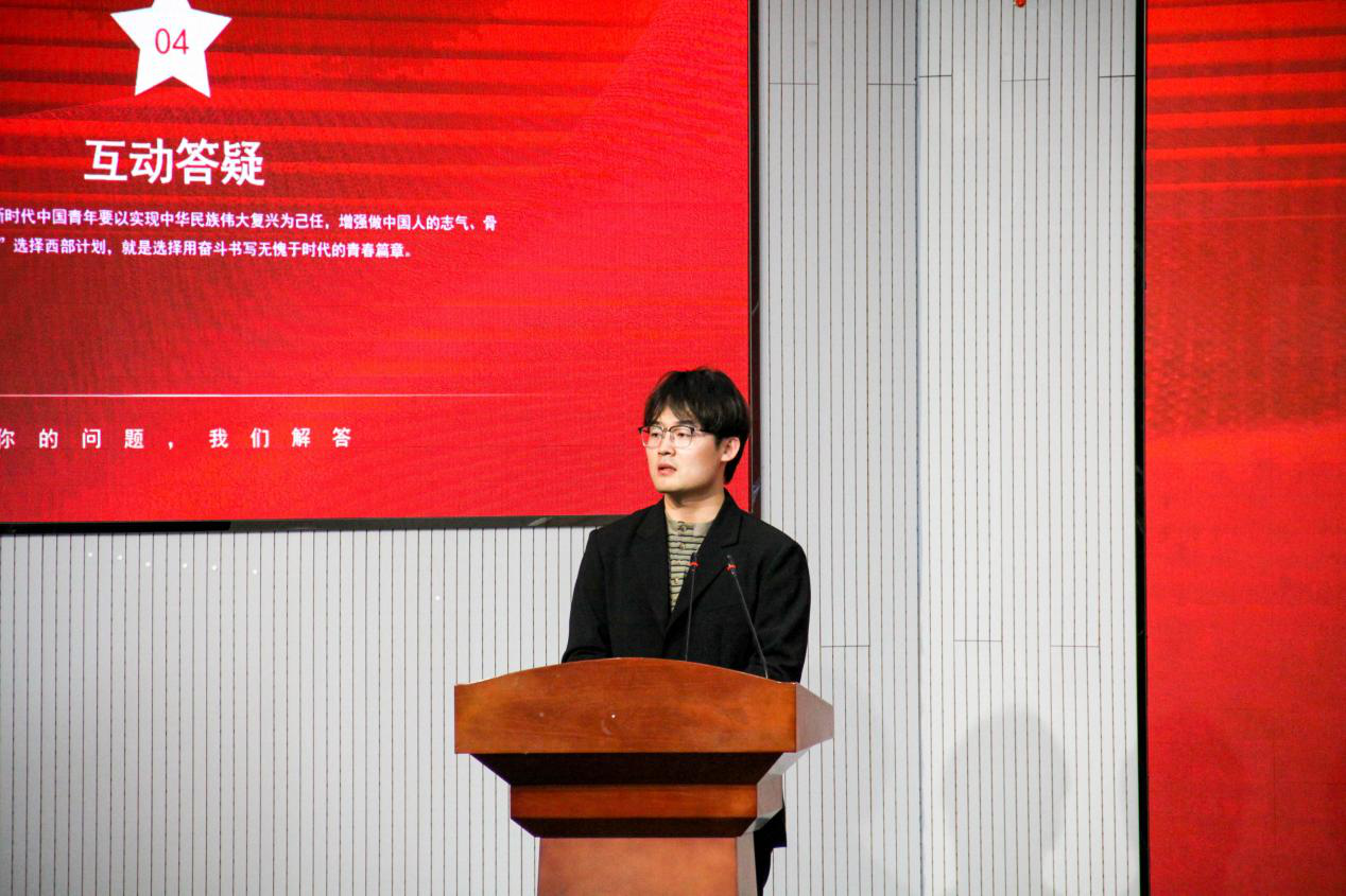 会上,杨小明鼓励2025届毕业生积极投身西部建设,为国家的发展贡献青春力量。他强调,西部计划不仅是一次志愿服务的机会,更是一次难得的成长与历练,希望同学们能够抓住机遇,勇敢追梦。校团委副书记李浩为刘猛颁发荣誉证书。现场学生踊跃提问,一一解答学生问题。