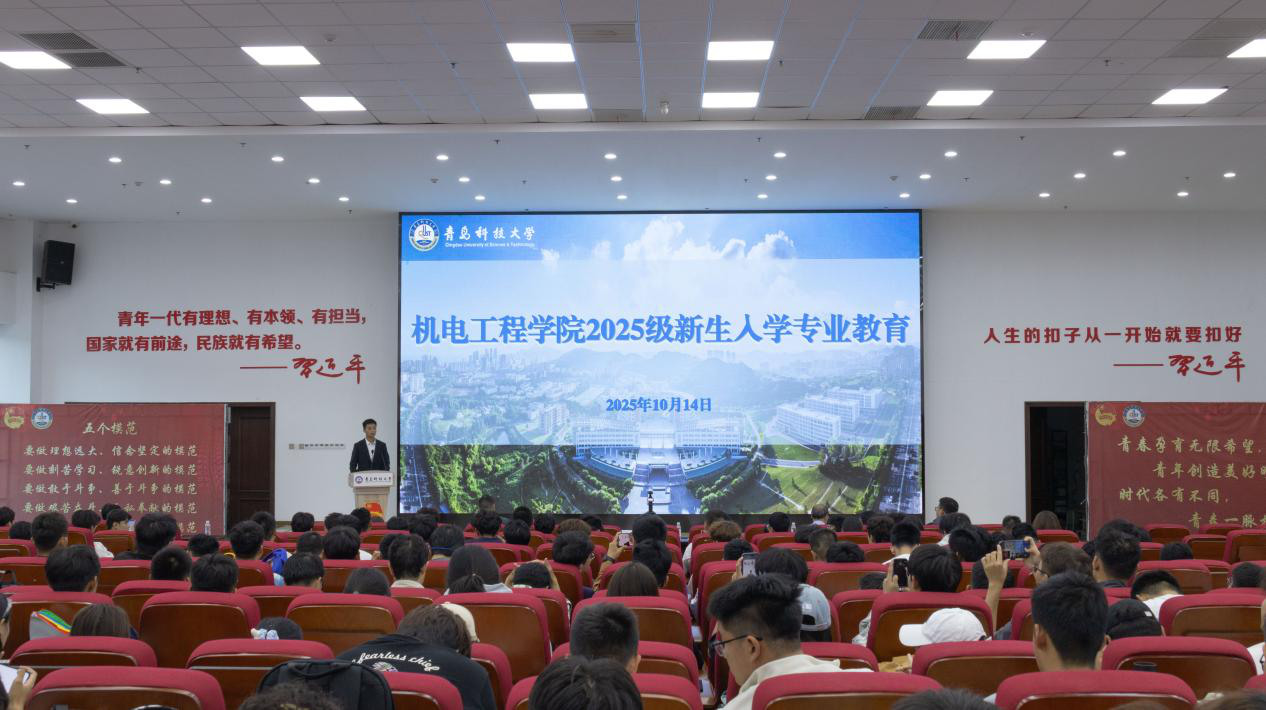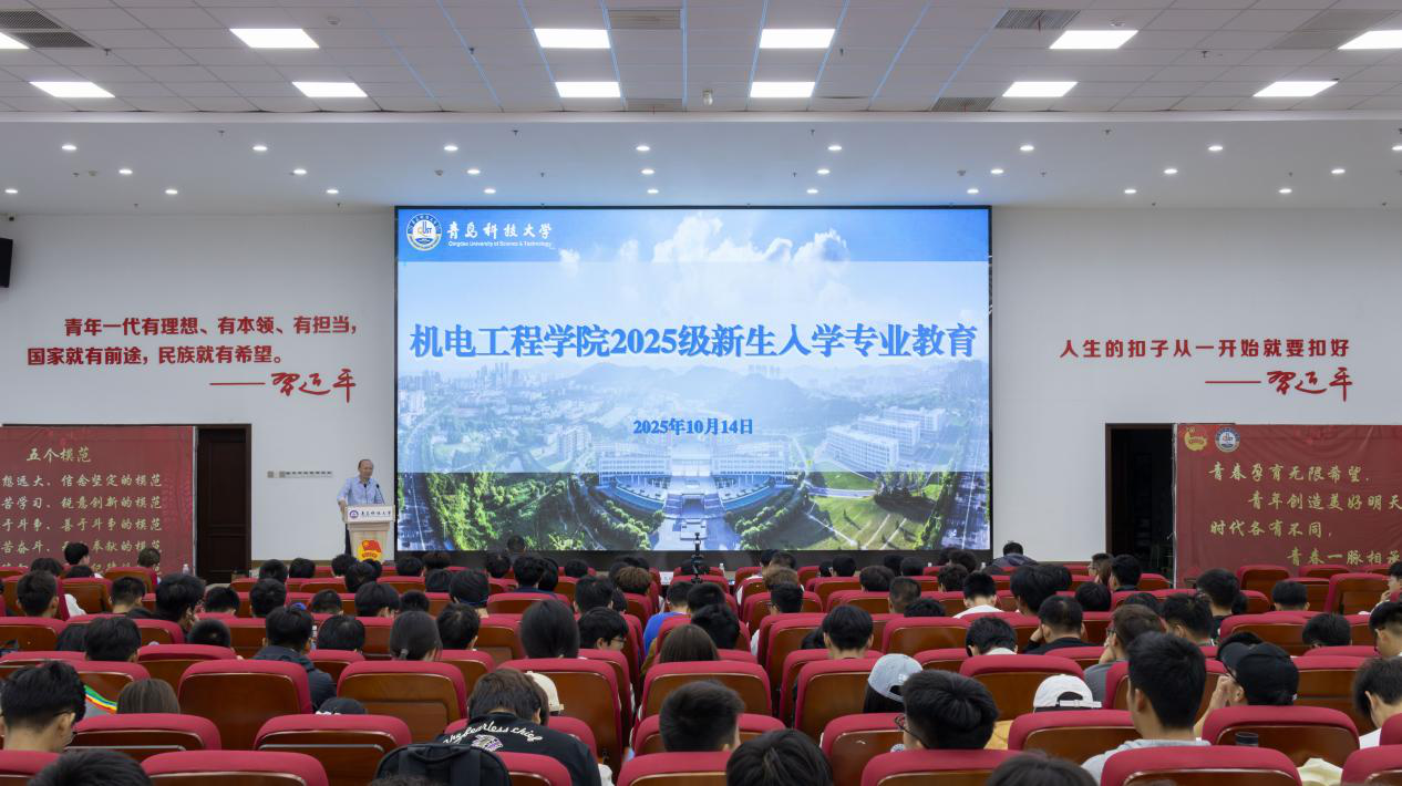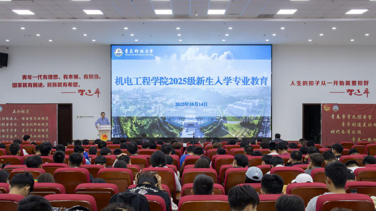 10月14日,pp电子官方网站2025级本科生新生入学教育大会在崂山校区北区报告厅分四场次举行。学校后勤处副处长兼校医院院长高术华、学校安全管理处消防科副科长余全波、学校心理健康教育与咨询中心副主任刘璐,pp电子官方网站党委副书记杨小明、副院长杨化林、李剑光、各教研室主任、2025级新生辅导员以及全体2025级全体新生参加大会。