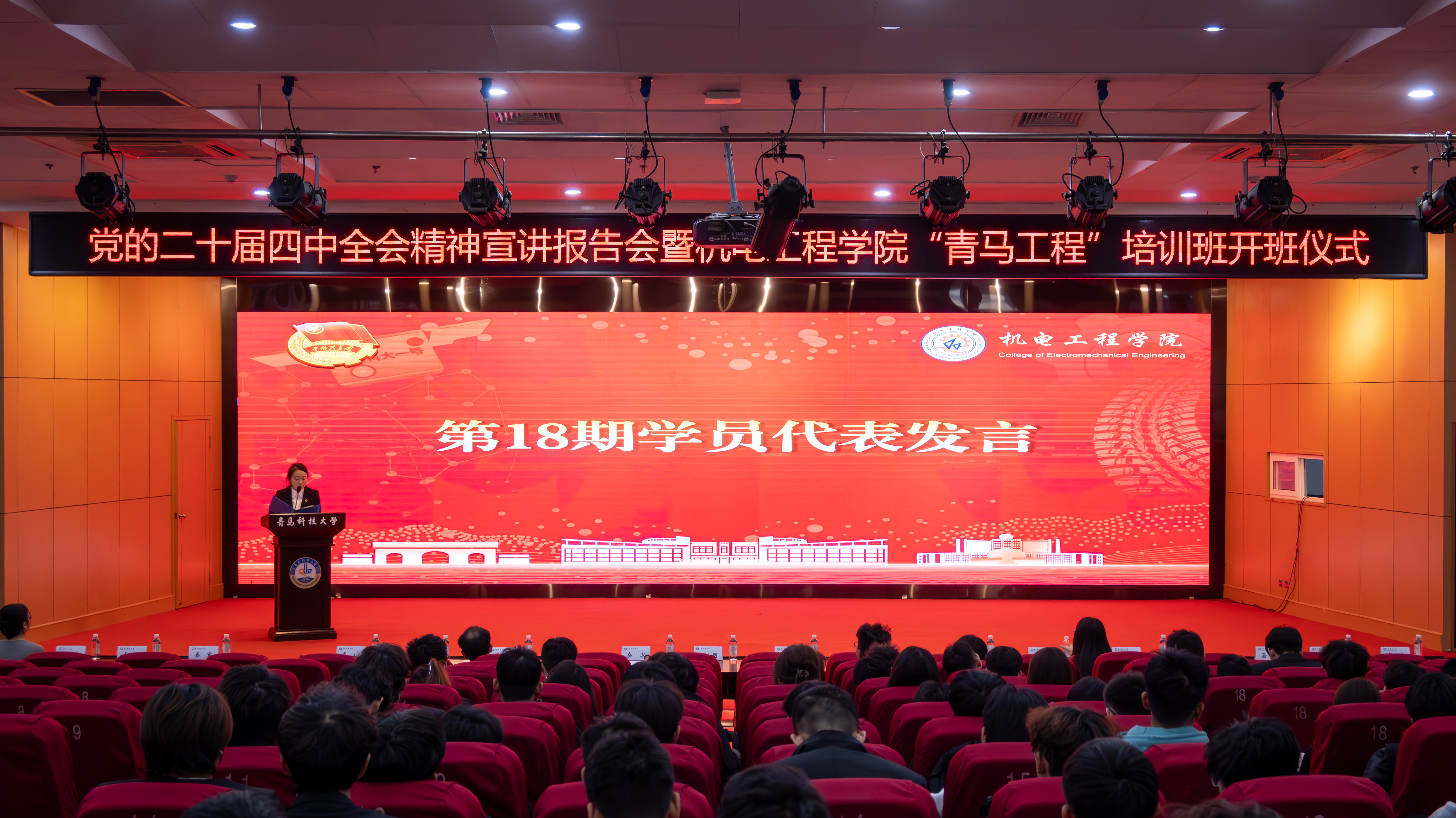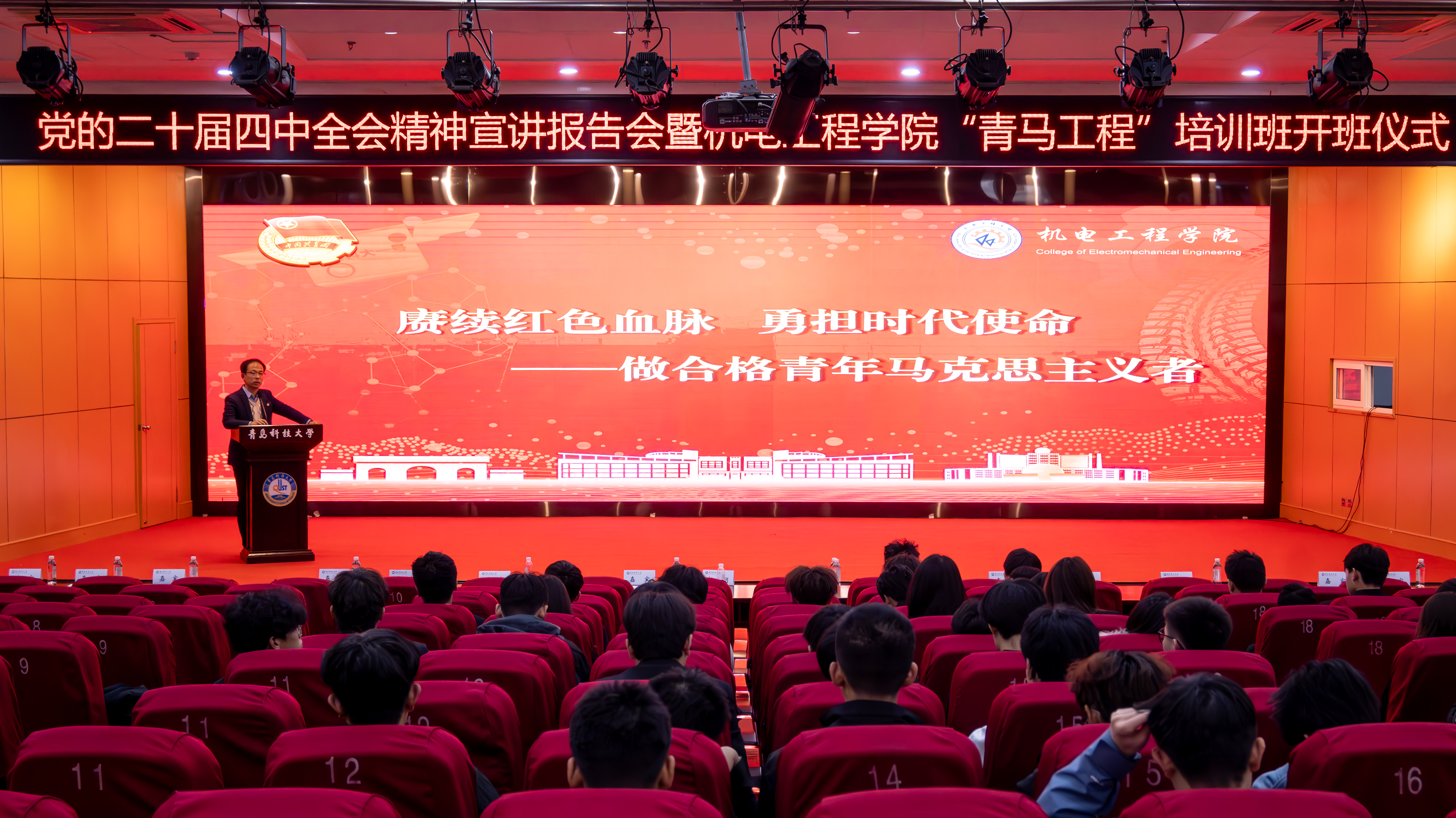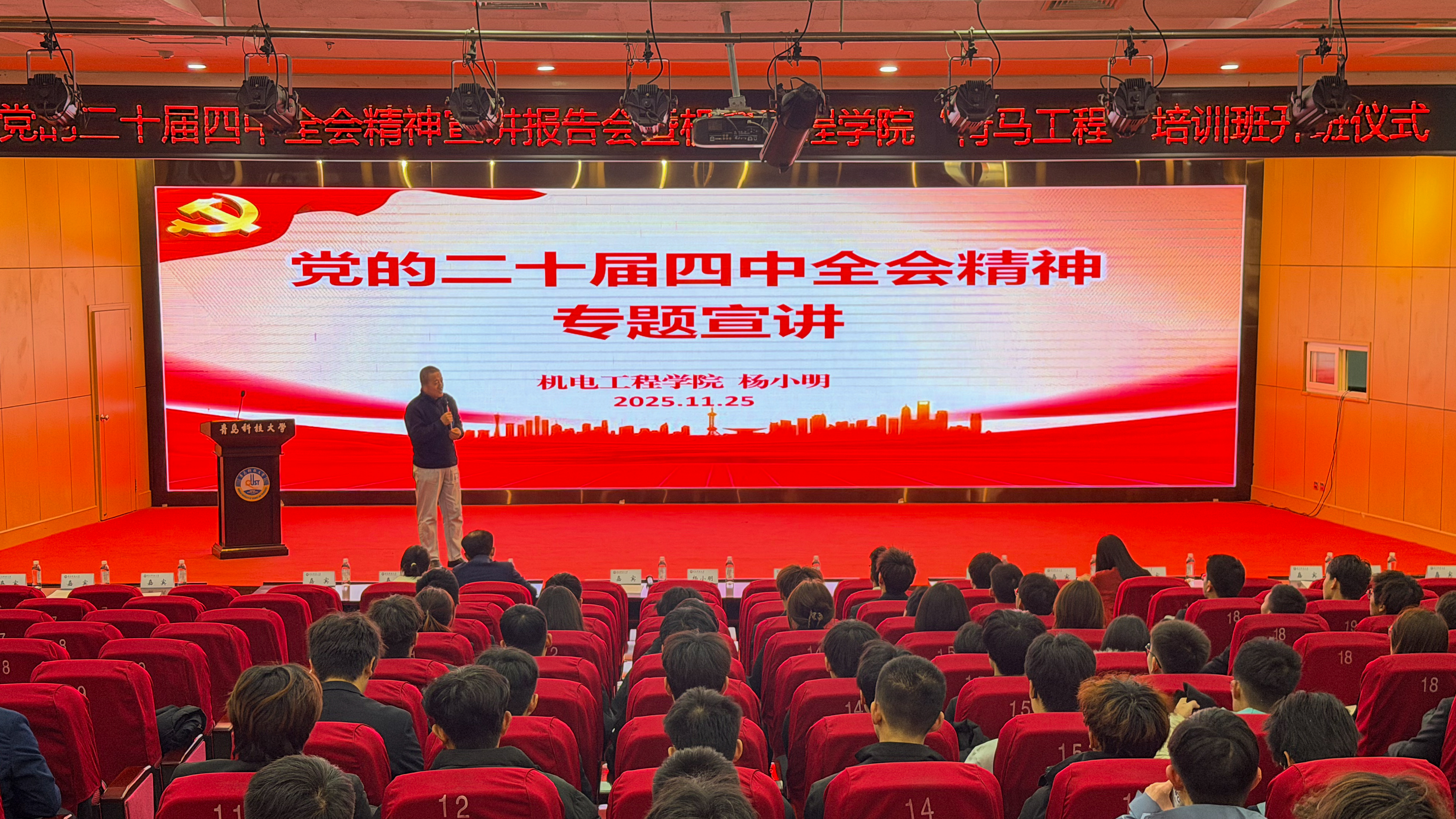 为深入学习贯彻党的二十届四中全会精神,扎实推进青年马克思主义者培养工作,pp电子官方网站于11月25日举办党的二十届四中全会精神宣讲报告会暨2025-2026学年“青马工程”培训班开班仪式。pp电子官方网站党委副书记兼副院长杨小明以及学院全体专兼职团干部,青马工程培训班学员、团校学员代表参与本次会议。开班仪式由学院团委副书记李慧敏主持。