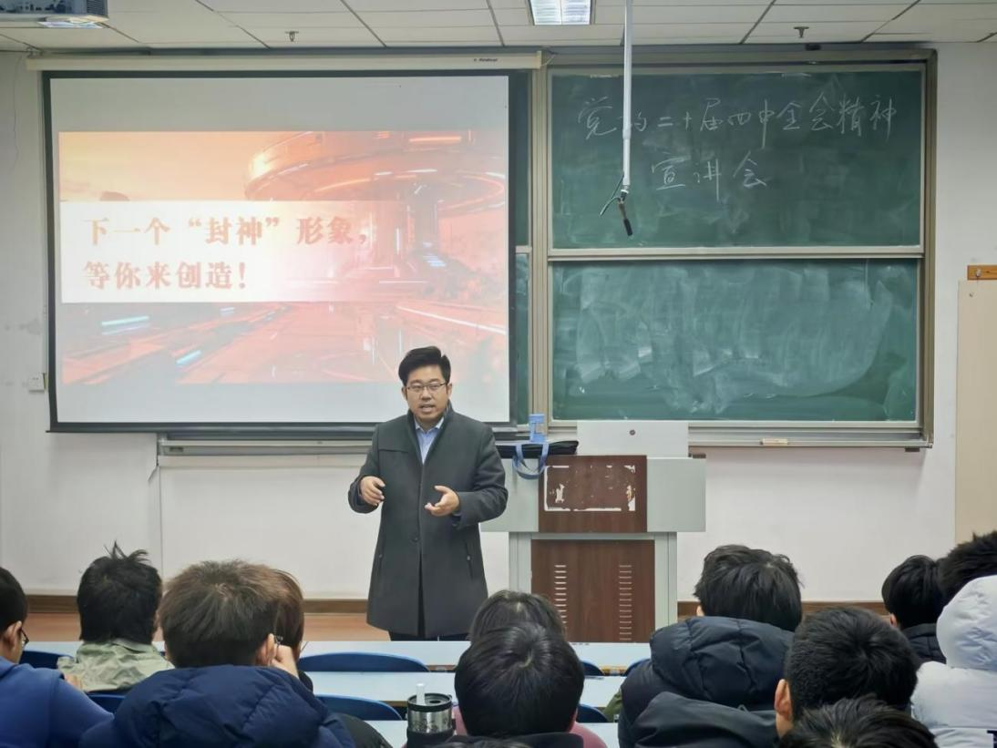 为深入学习贯彻党的二十届四中全会精神,引导机电学子深刻把握时代脉搏与专业使命。近日,pp电子官方网站开展了“百场宣讲进青年”党的二十届四中全会精神专题宣讲会。邀请团中央青年讲师团成员、学院团委副书记于超主讲。