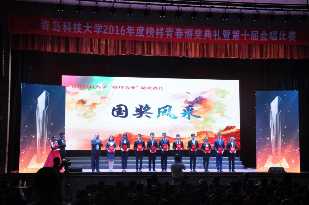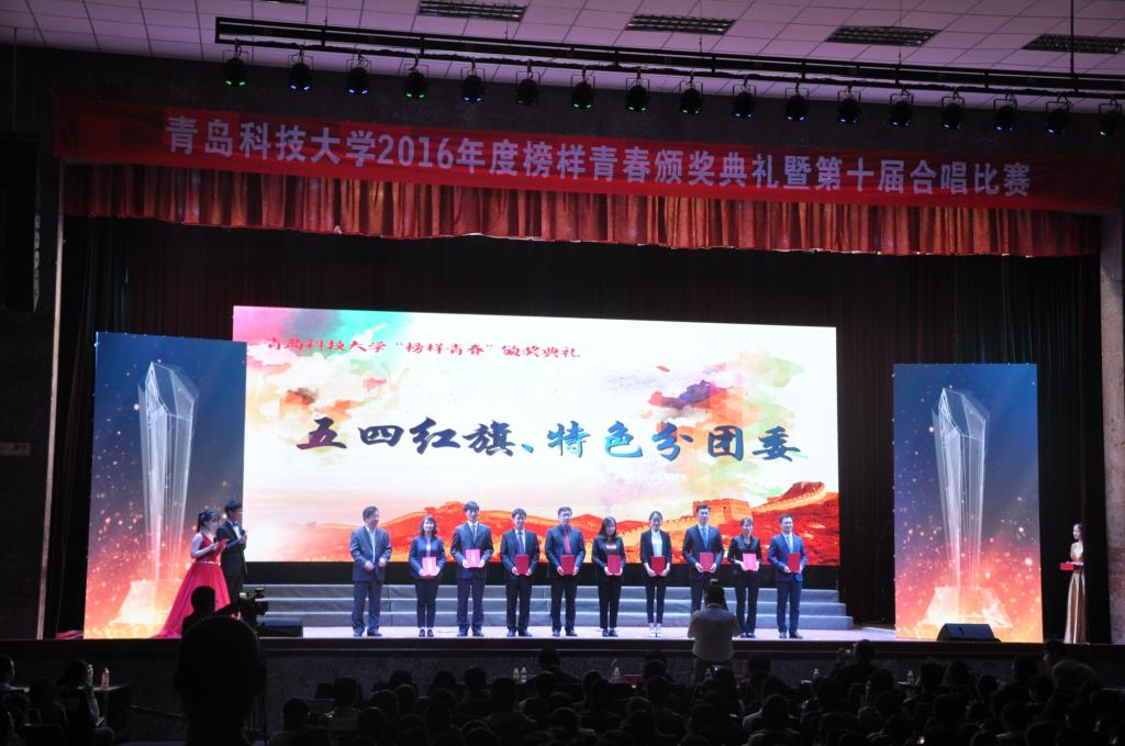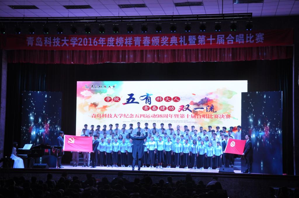 为纪念五四运动98周年,发挥榜样力量,弘扬五四精神,展现青年风采,5月2日,青岛科技大学2016年度榜样青春颁奖典礼暨合唱比赛在四方校区西礼堂举行,校领导刘兴云、张元利、韦殿华、姚锋、陈克正、吕万翔,学校机关部门、各学院有关负责人和千余名青年学生齐聚一堂,感受了科大青年的青春风采和蓬勃朝气。
