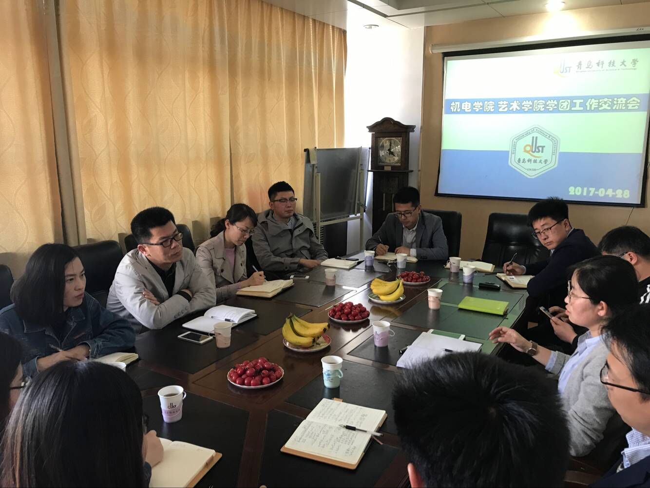 王伟首先对艺术学院的到来表示热烈欢迎,并介绍了学院学生工作基本情况,着重从人才培养模式、宿舍文化建设、学生会组织培养、科技创新等方面介绍了学院团学工作的工作经验。刘明森就艺术学院学生情况、团学工作开展等方面进行了介绍。会中,双方就学生日常行为规范、宿舍管理、科技创新等方面进行了深入交流。