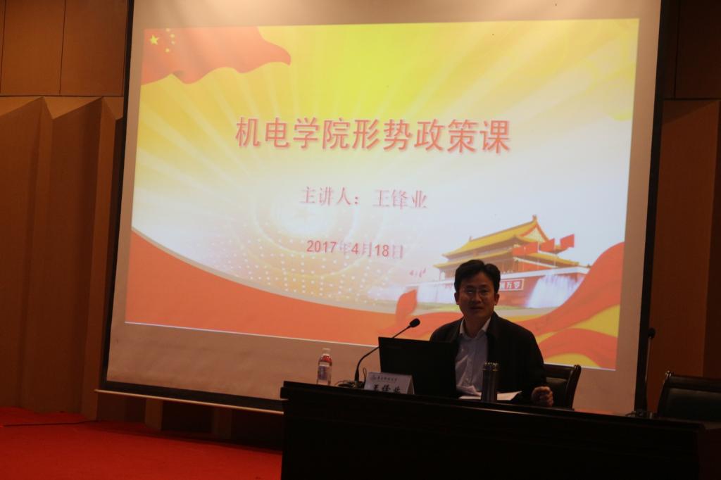 4月18日,pp电子《形势与政策》课在第三报告厅举行,校团委书记王锋业以《坚定不移走和平发展道路,为实现民族复兴中国梦营造良好国际环境》为主题,为pp电子300余名学生上了一堂精彩的《形势与政策》课。