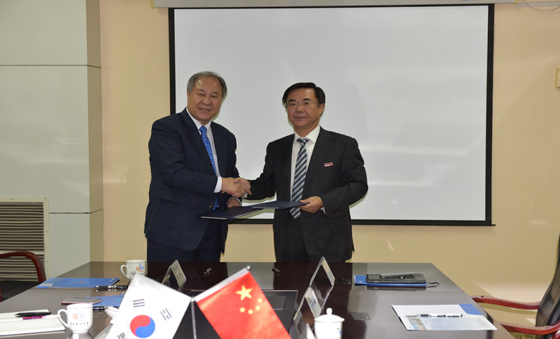 10月11日,韩国全州大学校长李镐仁教授一行莅临青科大参观访问,并与青科大签署“1+2”硕士课程项目协议书。校长马连湘与李镐仁代表双方在“1+2”硕士课程项目协议书上签字。国际交流处处长张宜恒,pp电子院长汪传生、党总支书记梁树清等参加签约仪式。