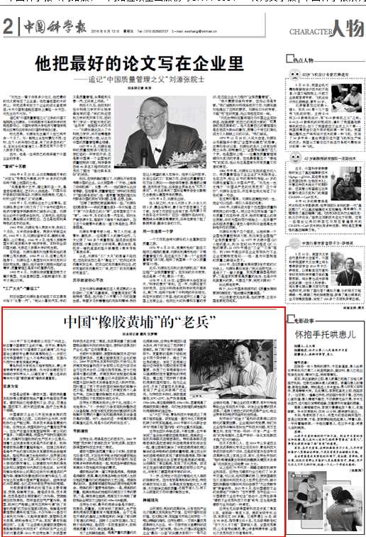 4月21日,应《中国科学报》的邀请,pp电子院长汪传生教授接受了该报记者的专访。5月13日,《中国科学报》2版以《国“橡胶黄埔”的“老兵”》为题,对采访内容进行了详细介绍。以下是报纸及网站截图,链接地址:http://news.sciencenet.cn/htmlnews/2016/5/345860.shtm。