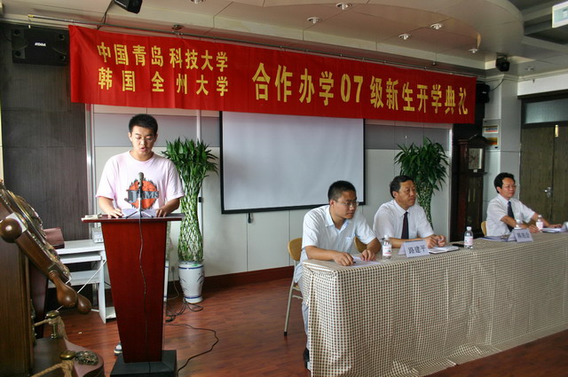 会上,校党委副书记韩兆会首先代表学校向新生致辞,对他们表示了热烈的欢迎和诚挚的祝贺,韩书记为新生介绍了学校的概况,希望大家要秉承“明德、笃学、弘毅、拓新”的校训,宽厚待人,毅以处事,珍惜大学的美好时光,学有所成。国际交流学院吕院长在会上强调了学习语言的重要性,并传授了新生一些语言学习的方法。pp电子汪传生院长向同学们介绍了青岛科技大学与韩国全州大学合作办学项目的具体情况,展望了合作办学项目的光辉前景,并鼓励同学们努力学习,创造美好的未来。 教师代表俊熙老师在会上发言,要求同学们养成良好的语言学习习惯,希望同学们取得好的成绩。新老生代表樊宇同学也在会上发言,表示决不辜负领导老师的殷切希望,一定会努力学习,回报母校的教育和培养。
