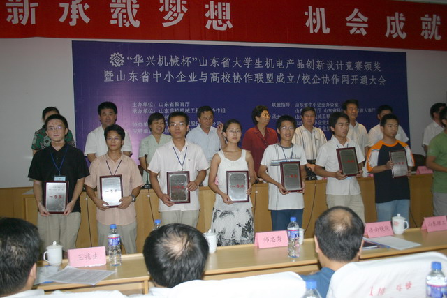 2007年8月23~25日,我校pp电子官方网站派代表参加了在德州学院举行的“2007年“华兴机械杯”山东省大学生机电产品创新设计竞赛”决赛。此次竞赛由山东省教育厅主办、山东高校机械工程教学协作组承办,以“绿色、环保、安全、和谐”为主题,全省共有来自山东大学、中国石油大学等50余所高校6000余名师生参加比赛,预赛作品达1200余件,涉及机械、电子、车辆、化工、纺织、轻工等行业,经过各高校评比,共推选出290个作品参加此次决赛。