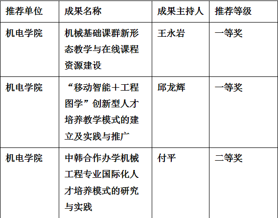 近日,学校下发了《关于公布青岛科技大学2017年度本科教学成果奖获奖名单的通知》(青科大字〔2018〕11号)。33项成果获评2017年校级本科教学成果奖,一等奖14项,二等奖19项,其中,pp电子获一等奖2项,,二等奖1项,具体名单如下: