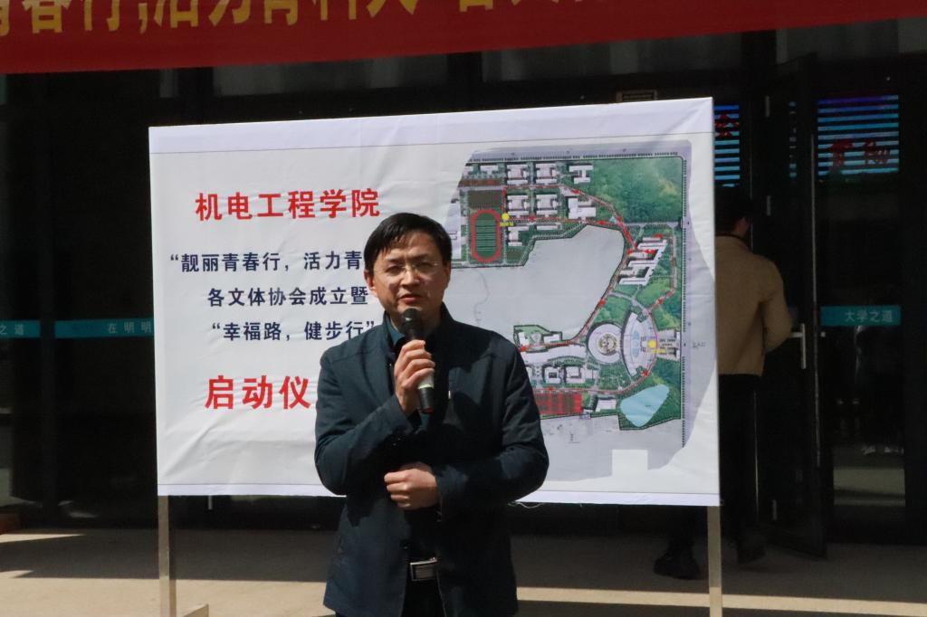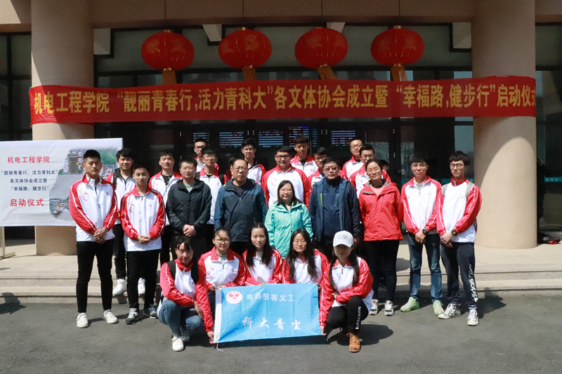 为进一步贯彻落实“活力青科大”教职工体育艺术文化节的活动宗旨——“强健体魄、健康生活、快乐工作”,pp电子本着为学院教职工添活力、增生机的目的,4月17日下午,在崂山校区举行了“靓丽青春行,活力青科大”各文体协会成立暨“幸福路,健步行”启动仪式。青岛科技大学工会主席郭曰铎,pp电子院长何燕、党总支书记孙立军,副院长郭建章、张斌、杨化林,党总支副书记兼副院长王伟参加了此次活动。活动由pp电子分工会主席付平主持。