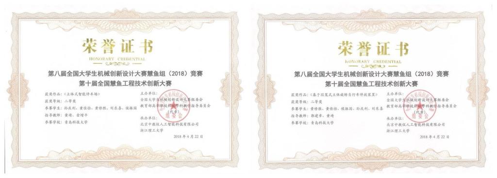 近日,由全国大学生机械创新设计大赛组委会和教育部高等学校机械学科教学指导分委会主办的“第八届全国大学生机械创新设计大赛慧鱼组(2018)竞赛暨第十届全国慧鱼工程技术创新大赛”在浙江理工大学举行。pp电子官方网站孙庆利、黄佳怡、黄修胜等五位同学制作的两件作品《立体式智能停车场》和《基于囚笼式立体旋转自行车停放装置》,经过现场作品演示与答辩等环节的激烈竞争,最终在入围作品中脱颖而出,双双斩获国赛二等奖。