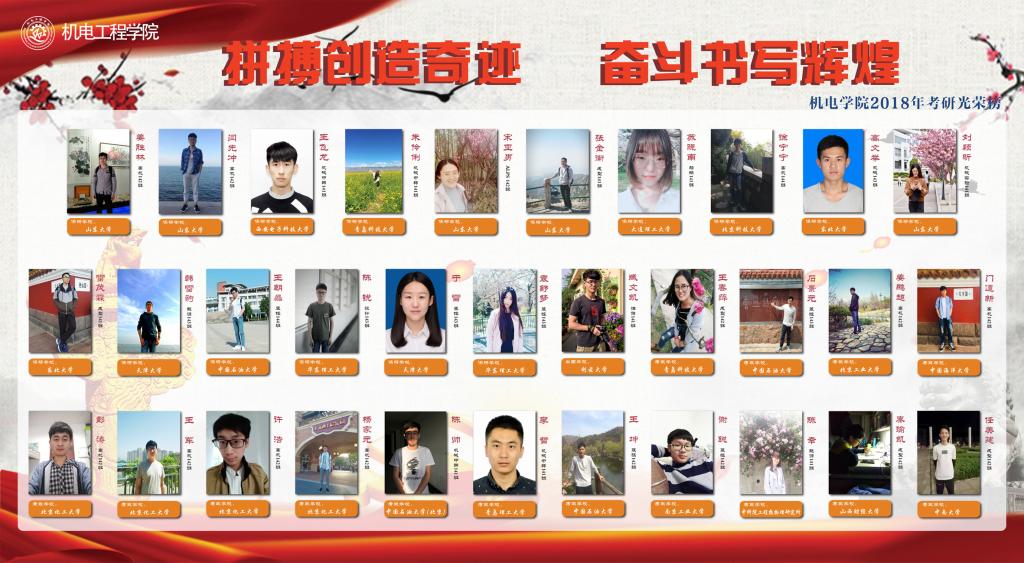 为进一步加强学院院风、学风教育与引领,努力营造拼搏努力、奋发进取、传承引领的考研学习氛围,凝聚浓厚的青春榜样示范力量,pp电子于近期开展了“拼搏创造奇迹,奋斗书写辉煌”考研成果展。
