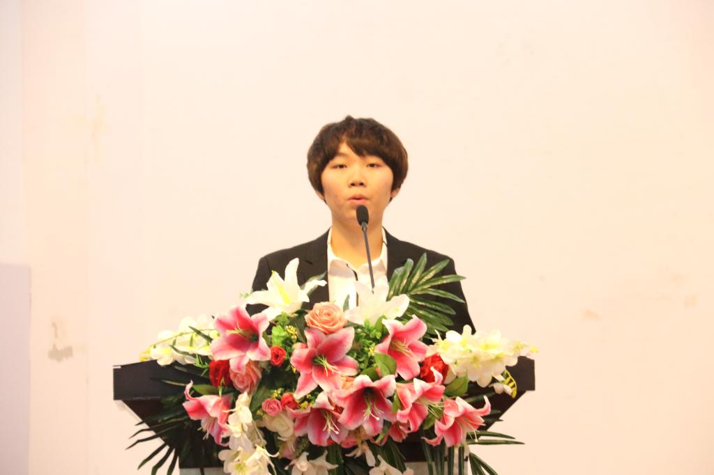 在校生代表、pp电子第十八届学生委员会第二任主席毕岚森和2018级新生代表于燕妮分别发言。