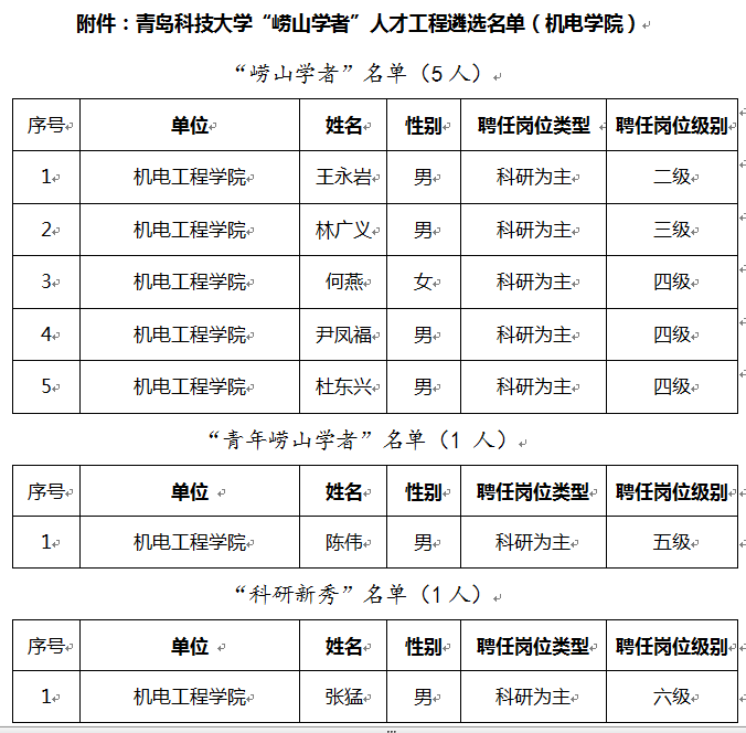 近日,学校公布青岛科技大学“崂山学者”人才工程遴选公示名单,pp电子7名老师榜上有名,王永岩、林广义、何燕、尹凤福、杜东兴5名老师获“崂山学者”荣誉称号;陈伟老师获“青年崂山学者”荣誉称号;张猛老师获“科研新秀”荣誉称号。