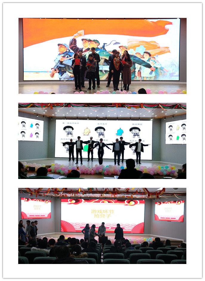 温馨的场景布置,处处充满着节日的欢乐。联欢会在艺术团悠扬的《祝酒歌》中拉开序幕。《月满西楼》、《我的中国心》、《甜蜜蜜》、京剧《锁麟囊》等展现了pp电子老师多才多艺。合唱《春暖花开》、《我们走在大路上》、《走进新时代》等充满正能量,昂扬向上,表达了对pp电子的祝福;《朋友》、《兰花草》、《隐形的翅膀》歌声洋洋盈耳,《团结就是力量》、《青苹果乐园》等歌声娓娓动听。一曲曲合唱,掀起一波又一波的高潮。对唱《天籁传奇》引起阵阵掌声,点燃了现场气氛。学院党政领导诗朗诵《春风第一枝》声情并茂,激昂澎湃,回顾了机电的风雨历程,体现了对机电的热爱和作为机电人的自豪。《欢乐一家人》、《海草》的舞蹈动作活力迸发,令众人捧腹,给大家带来了欢乐。