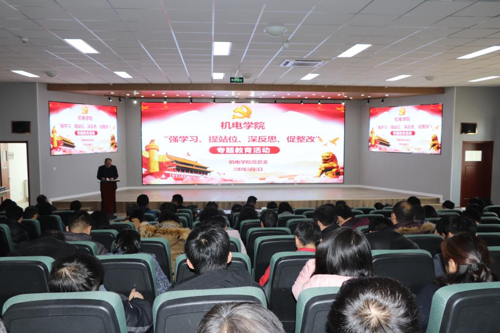 按照《中共山东省委教育工委山东省教育厅关于在全省教育系统迅速开展“强学习、提站位、深反思、促整改”专题教育活动的通知》精神和学校安排,全面提升我院教职员工的政治意识、规矩意识、纪律意识,切实加强管理、规范办学,努力推动学院高质量发展,3月5日下午,pp电子在机电大楼530会议室开展“强学习、提站位、深反思、促整改”专题教育活动,活动由党总支书记孙立军主持和领学。