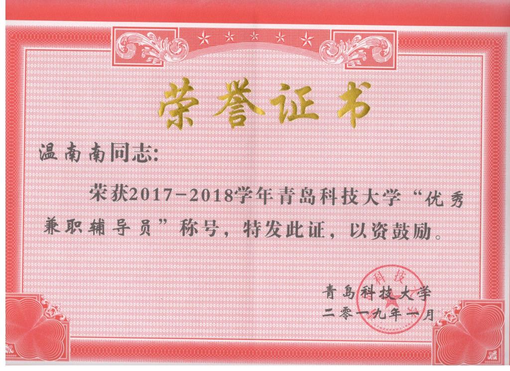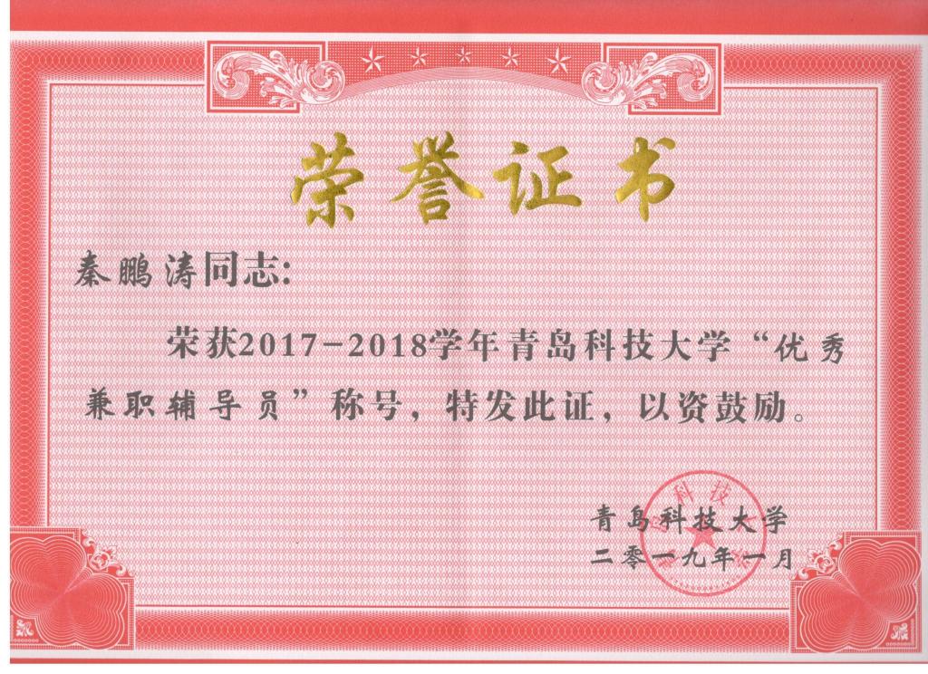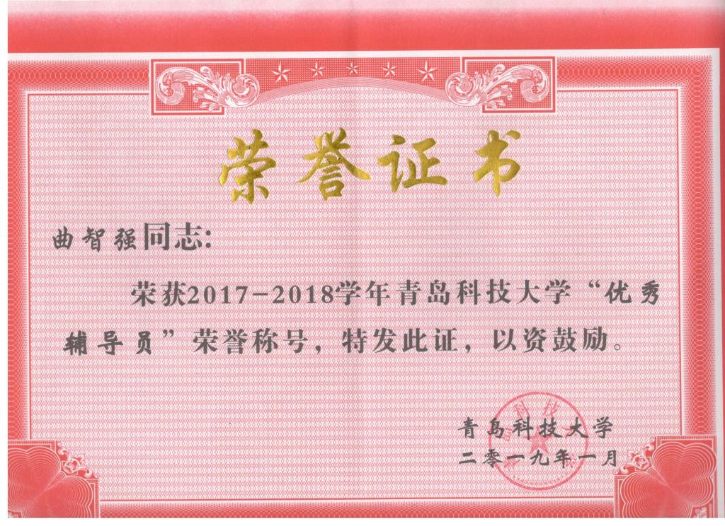 近日,在学校公布了2017-2018学年青岛科技大学优秀辅导员名单,pp电子曲智强老师荣获校优秀辅导员。
