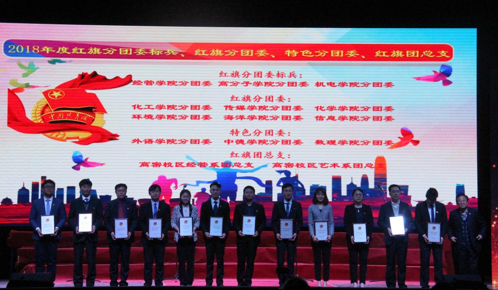 王作辉老师代表pp电子分团委领取分团委最高荣誉----红旗分团委标兵。pp电子分团委是全校唯一连续两年获得该奖项的分团委。