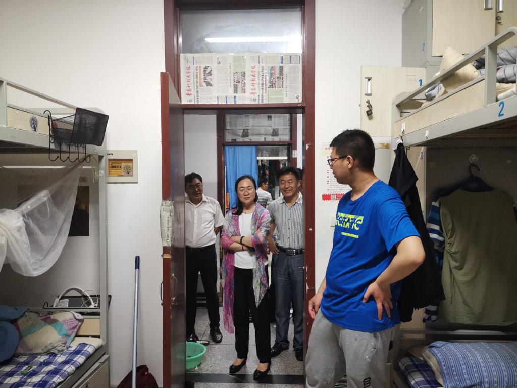 6月26日晚,pp电子院长何燕、党总支书记孙立军、副院长郭建章、党总支副书记兼副院长王伟、副院长张卫锋,毕业生班主任代表以及全体专兼职辅导员老师,深入宿舍看望慰问2019届毕业生。
